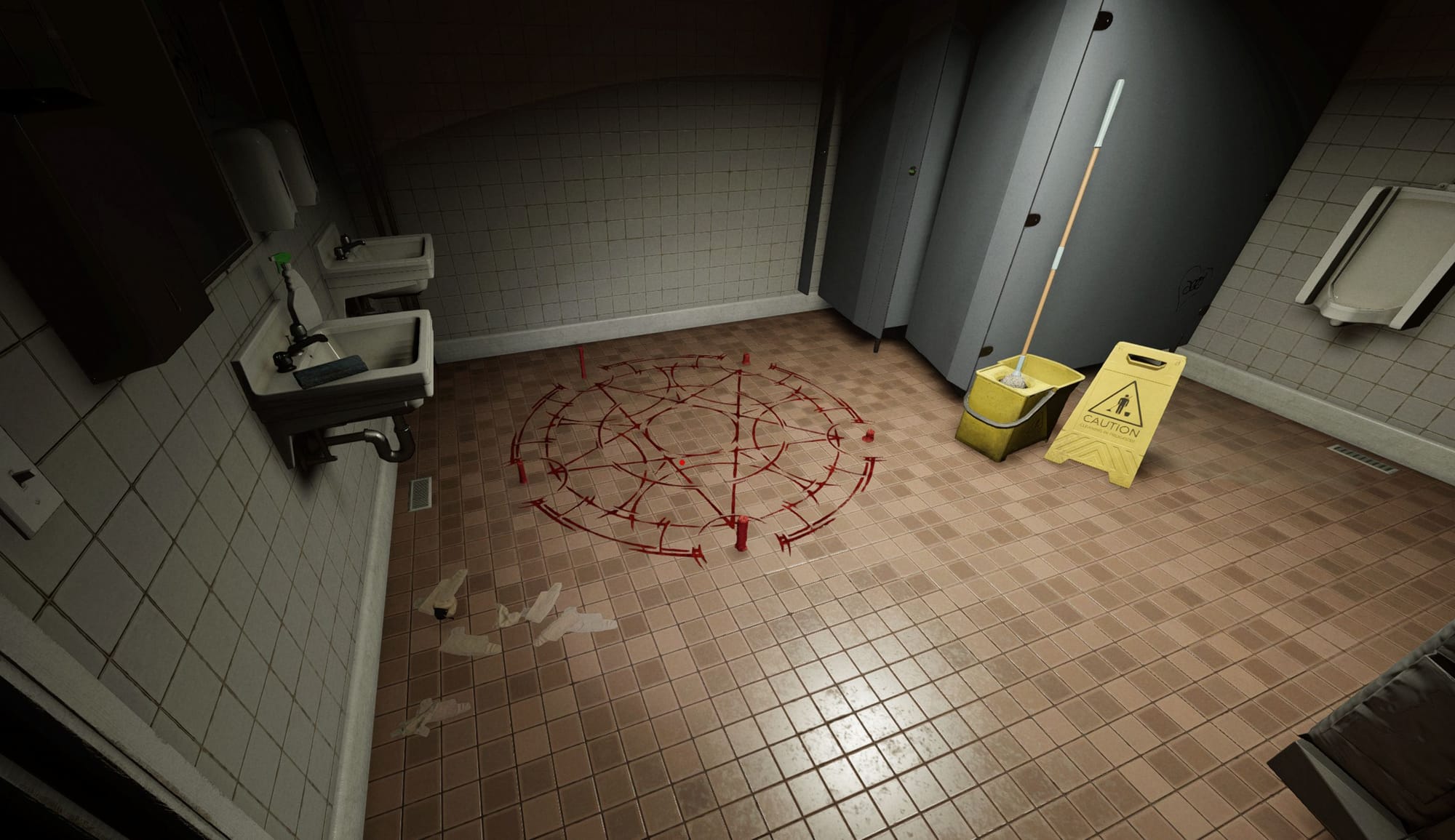In der Mitte des Raums findest du den Beschwörungskreis vor der Badewanne und neben dem Klo.