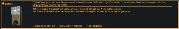 Dieser hat eine Chance EMF Stufe 5 anzuzeigen, wenn der Geist eben diesen Beweis hat, ansonsten zeigt es eine niedrigere EMF Stufe an.