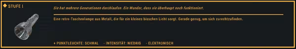 Die erste Stufe der Taschenlampe erfüllt gerade so ihren Zweck.